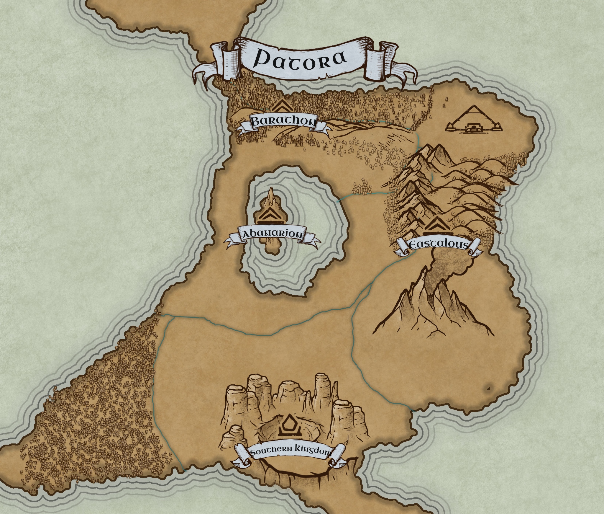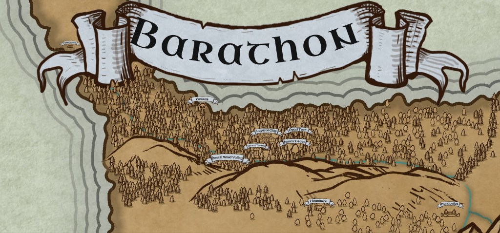 Barathon was once buried in the sea. Through intense dam’s the Jekaz slowly unmasked the land. When most of the land was uncovered the Warlock Bartholomew cast a spell on the land causing a dense forest to fill the barren land. The Jekaz were so disturbed by the change they returned to their mountains in the North afraid of trying to take the land. Years later the history of Bartholomew disappeared from the Jekaz traditions and the people desired to take the land their fathers uncovered.
